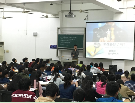 孙伟河老师是和马文可同届的优秀毕业生,他向同学们展示了四张不同的简历,以此告诉同学们简历应该做到精致。好的简历是一张入场券,一张好的简历首先要重点展示自己的师范生技能,包括教学技能、教学研究、课件制作、实验教具制作和科技比赛活动这些方面。他说道,凡招聘者都会从应聘者“是否愿意做这个工作”、“是否做得了这个工作”以及“其优势在哪里”这三个方面对应聘者进行考察。因此,他告诫学弟学妹们利用大学的时间来充实自己,磨练自己的师范生技能,日后才能在众多的应聘者脱颖而出。同时,孙伟河也很认同马文可关于教师要对物理知识有更深刻理解这一说法,他建议道:“基层教师要加深对学科本质的理解,多看看网易公开课,看看大学教授们是怎么讲解物理知识的。”