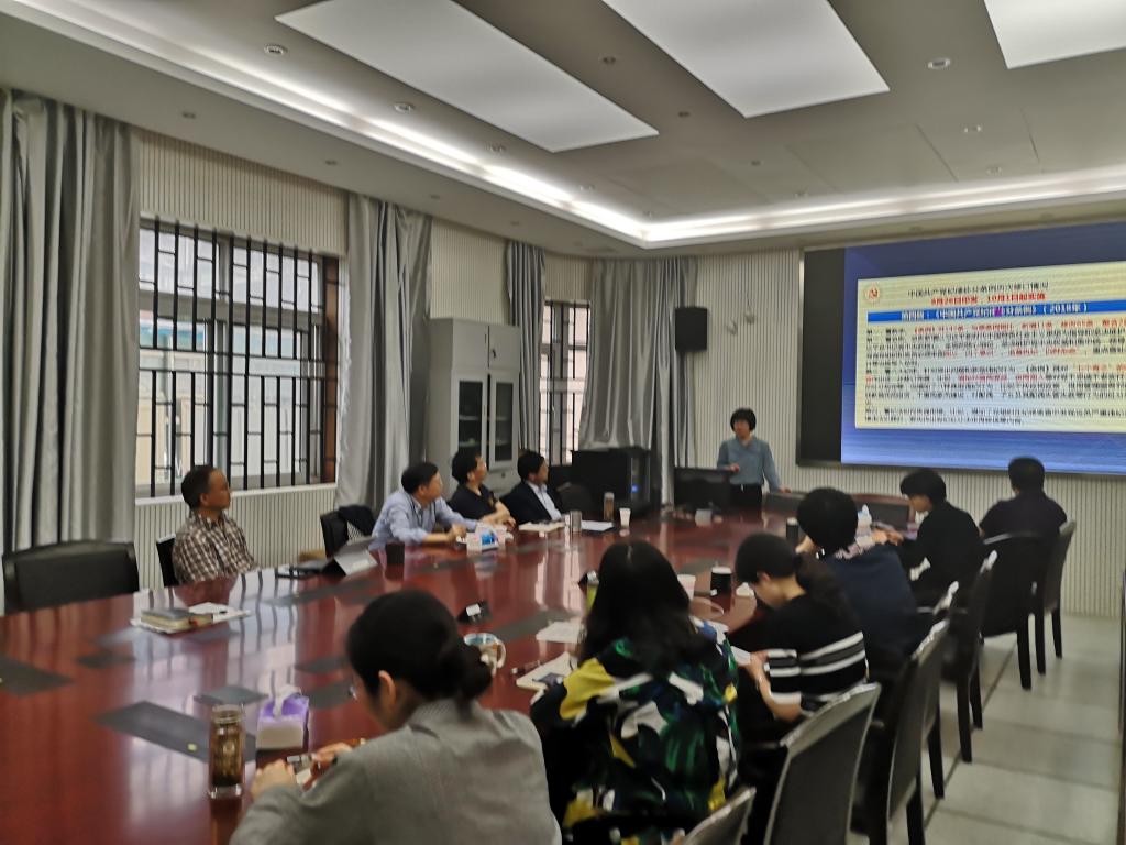 最后,校党委副书记覃红作总结讲话,他对本次支部活动给予了高度评价,并对支部工作提出了三点要求:一是支部成员要进一步加强学习,“学习永远在路上”,要将“两学一做”落到实处;二是要进一步自觉贯彻、落实党的纪律,要严守党的政治纪律、组织纪律、群众纪律、廉洁纪律、工作纪律、生活纪律等六大纪律;三是要通过学习、落实党的纪律条例,进一步推动工作,把工作落实好。
