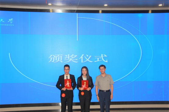 (郎东鹏老师为一等奖获得者颁发荣誉证书)
