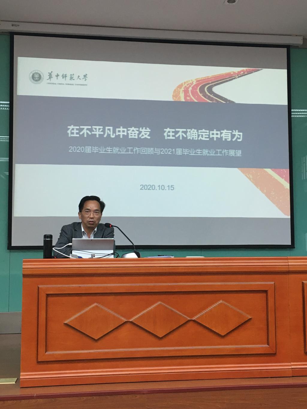 (招就处副处长郎东鹏介绍我校学生求职能力训练与指导工作情况)