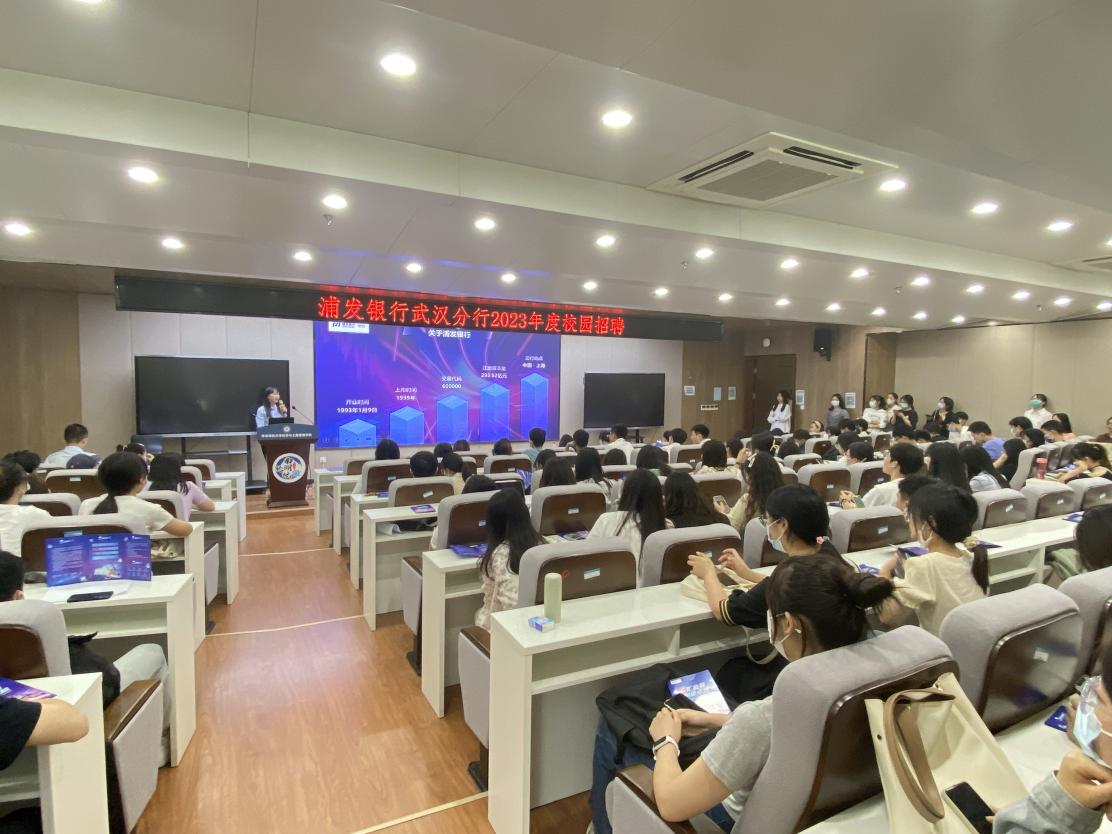 分行负责人司经理向参加宣讲的同学们详细介绍了浦发银行的发展历史和在国家经济社会发展中的重要责任,提到“浦发银行主动求变,改革创新,在市场同业中率先按照湖北产业特色和产业链布局,按图索骥,找准发展脉搏,实施“一行一策”改革,全面转型服务实体经济客户和高科技产业客户。”宣讲结束后,同学们围绕行业发展、薪资水平等进行了提问,并积极投递简历。