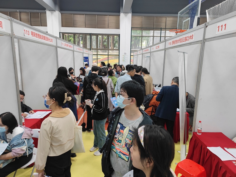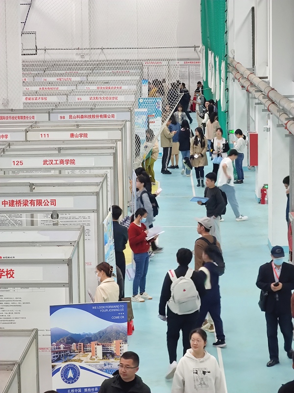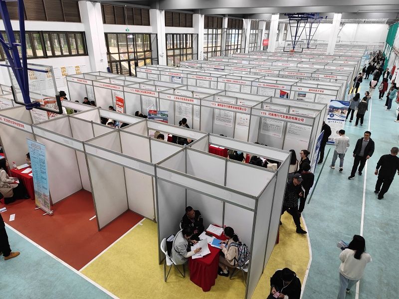 4月22日,2023年春季在汉部属高校研究生、本科生大型双选会在佑铭体育馆举行。来自全国各地高校、科研院所、国防军工、医疗卫生、中大型企业、政府机关等近130多家单位参会,为毕业生提供10000多个岗位。
