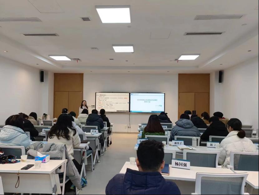 接下来,卢雯就《大学生职业生涯发展与规划》课程的课改做主题分享。她从课程的时代要求、以职规赛促进教学改革,后续课改时间及工作安排三方面做了交流分享。