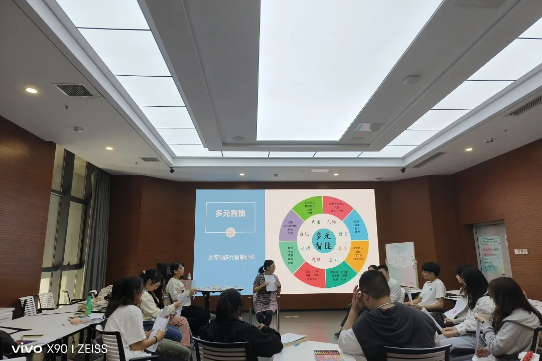 随后,余璇老师向大家分享了加德纳多元智能理论,通过引导同学们自绘多元智能图,挖掘自我提升的途径,并通过VARK学习风格测试,发掘自己的学习风格,在接收、窍门和运用中得到切实提升。同学们在理论学习的过程中,通过个性化测试融入自身特性,更好地将理论与自身实际相结合,纷纷表示受益匪浅。