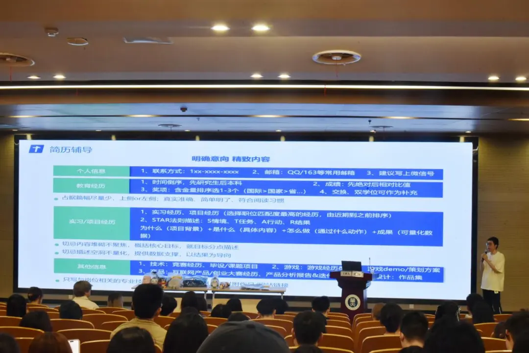 2024年简历制作大赛培训活动在南湖综合楼一楼报告厅举行。此次培训由腾讯校招HR蒋一晨为学生开展简历制作辅导,51风流