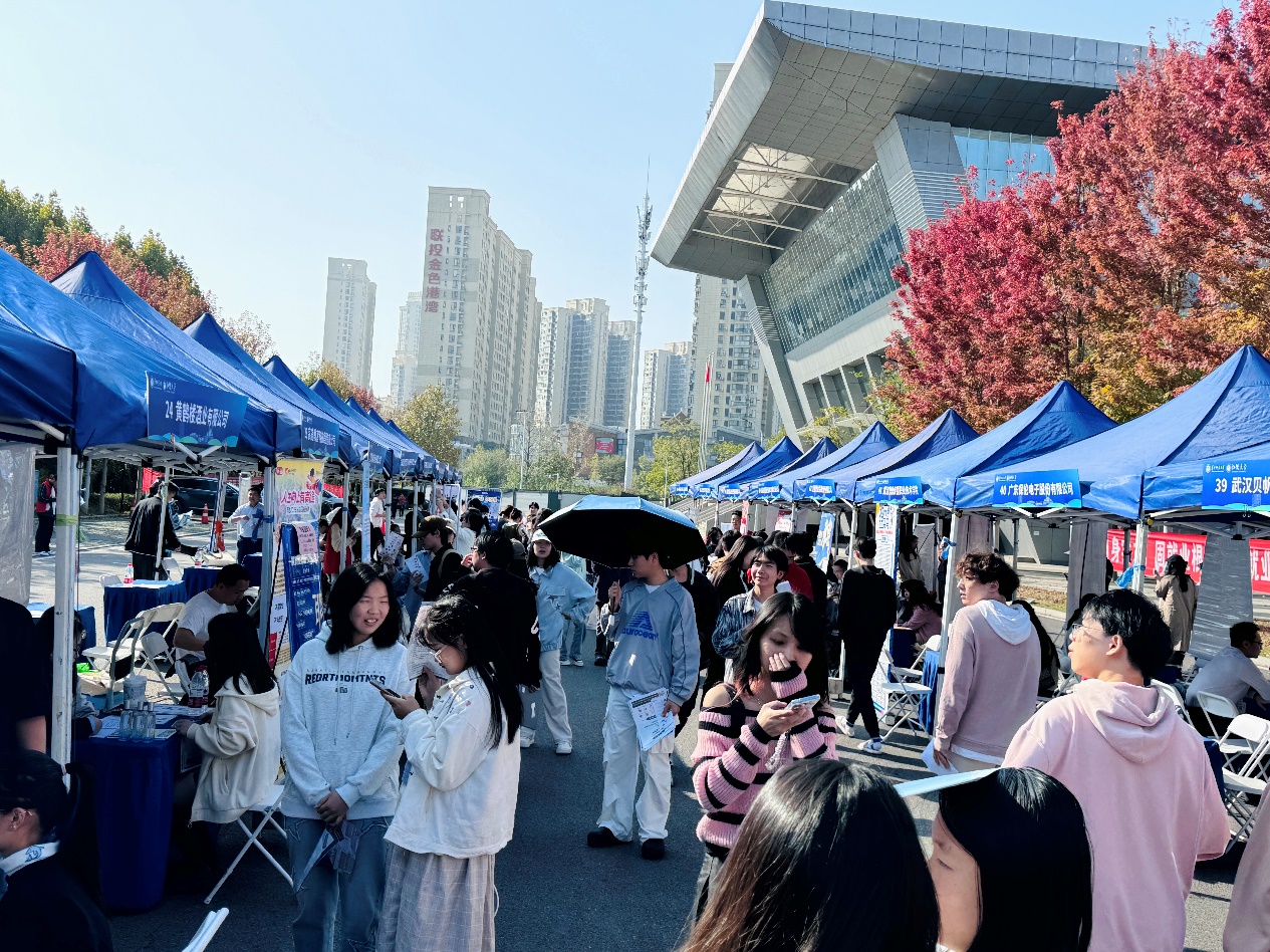 基地在江汉大学活动中心门前广场举办了2024年“宏志助航计划”11校联合校园招聘会。