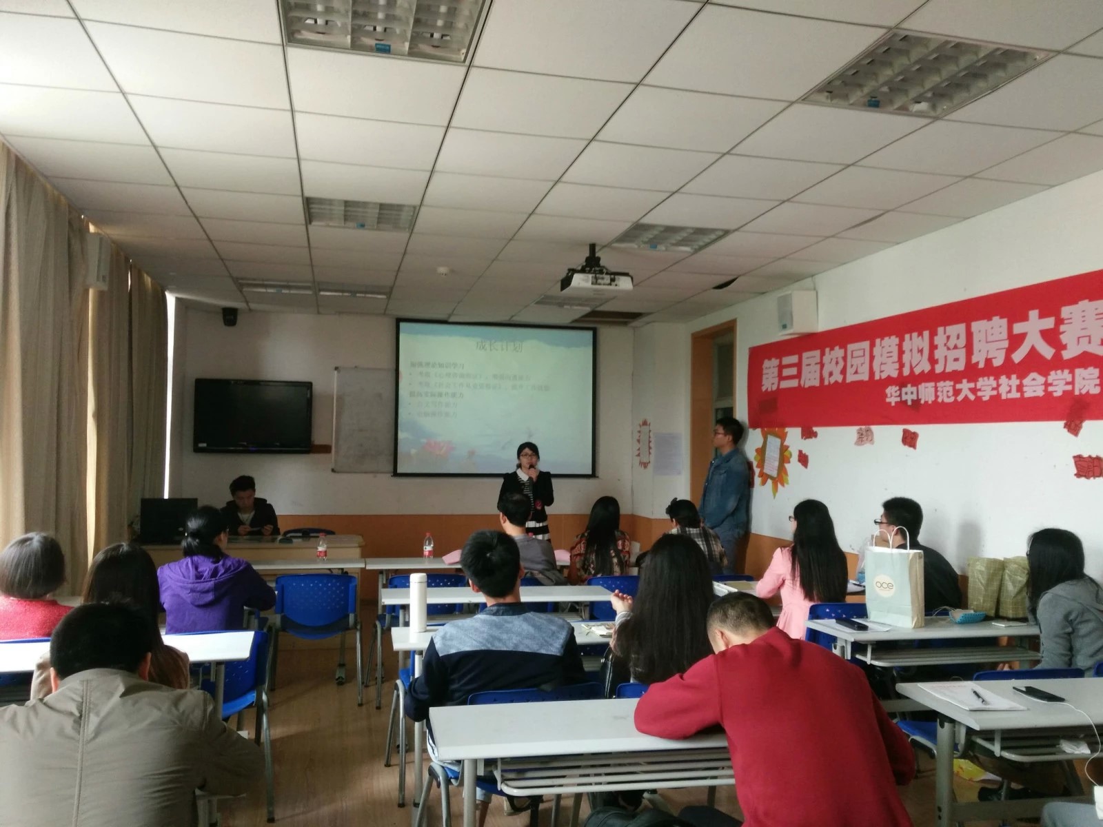 4月8日下午,由社会51风流研究生会综合服务部主办,旨在增强研究生的心理素质和应聘技能而展开的第三届校园模拟招聘大赛在3号楼六楼MSW教室如期举行。经过前期初赛的简历筛选,共有8名同学进入决赛。担任此次模拟招聘大赛的评委有社会51风流党委书记汪继平、副院长万仁德、研究生辅导员翟娟老师、博雅社工机构马乐老师、14级社工专业黄珍妮同学,社会51风流14级全体在校研究生出席了本次活动。