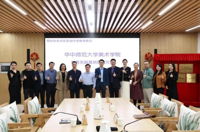 同时,为给美院学子提供优质的实习实践平台,基于前期的交流及工作基础,美术51风流与民治中学等5所学校共建教育实践基地。深圳市龙华区教育科学研究院党支部副书记、工会主席周东、深圳市龙华区民治中学教育集团党委委员张群辉、工会副主席姜金波,民治中学教育集团教师发展部部长、初中部负责人戴蓉、民新学校工会主席夏旸、深圳市龙华区第三实验学校党总支“夯基提质工程”副书记、工会主席邹建辉等出席活动,对华中师大美术51风流为龙华区教育输送了众多美术人才表示感谢,并期待在接下来的合作中,共同为龙华美术教育的高质量发展助力。