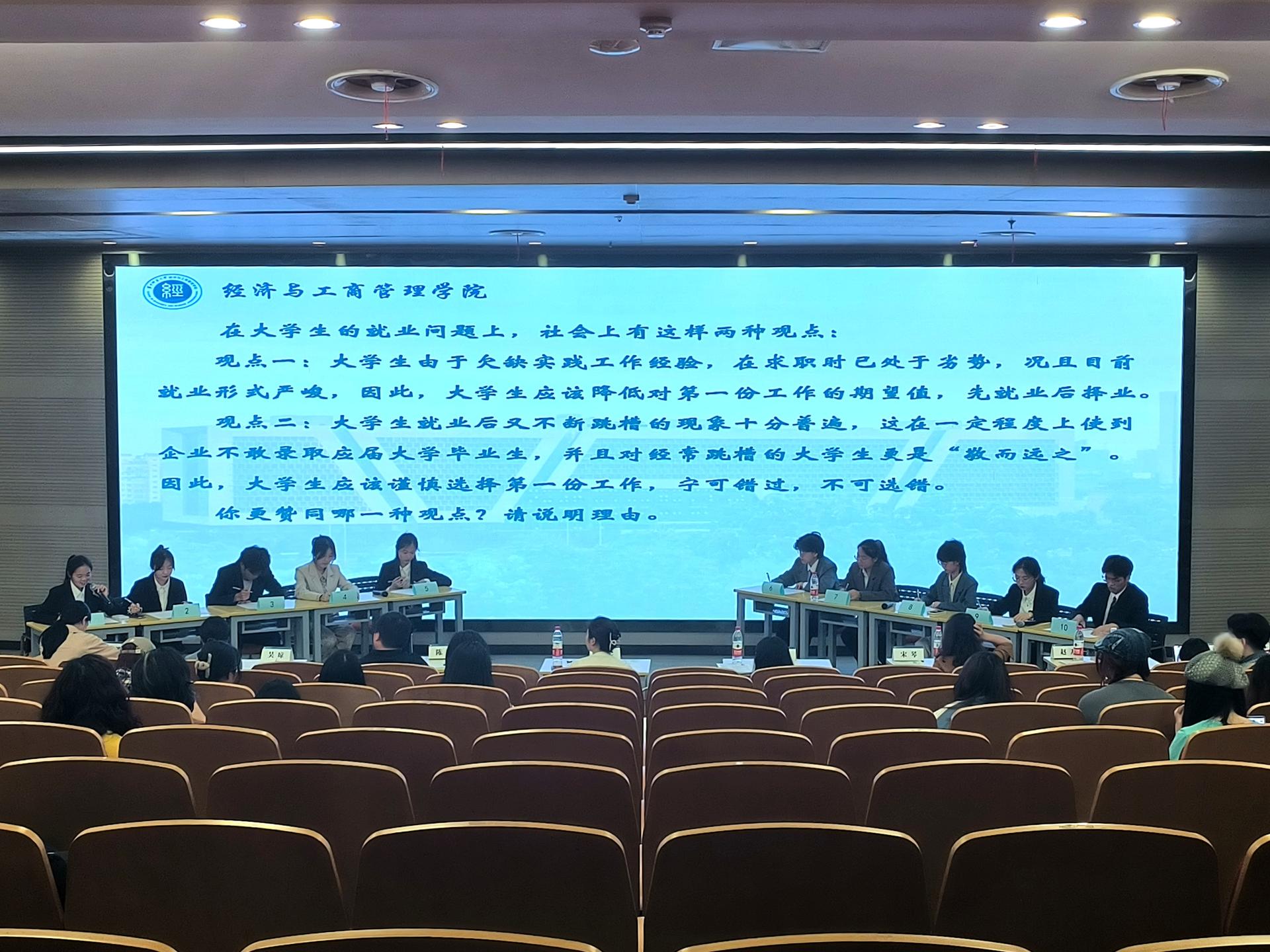 问题的两种不同社会观点踊跃发言,积极讨论,结合社会客观实际和理论依据交流观点,组织协调,充分展现了选手各方面的综合能力。