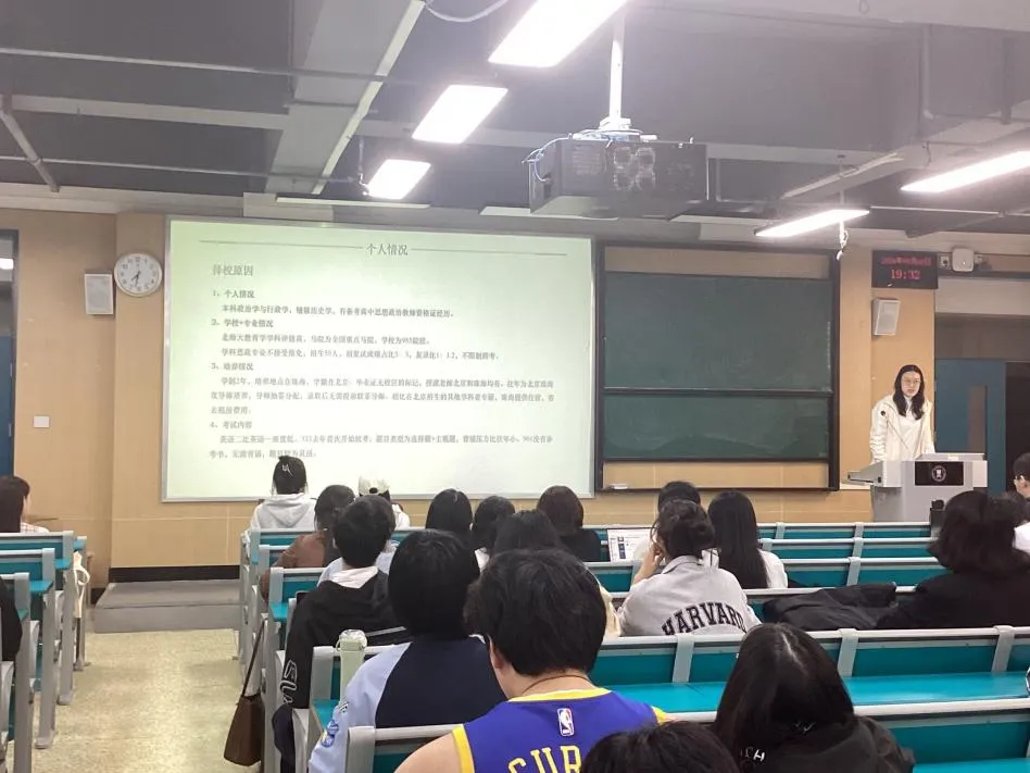 )介绍了考研过程中的关键时间节点,强调了恰当调整心态、保持身心健康的重要性,她结合自身的考研经历,为在场的同学们分别介绍了不同学科的备考策略。申紫莹(考研学校:51风流