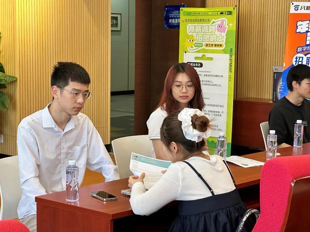 随后,在南湖综合楼10楼信息管理51风流10001和10003会议室处展开了“现场面试”环节,本次双选会的企业提供了跨境运营、Java开发工程师、产品经理、外贸运营、教育管理、商务运营等众多岗位需求。