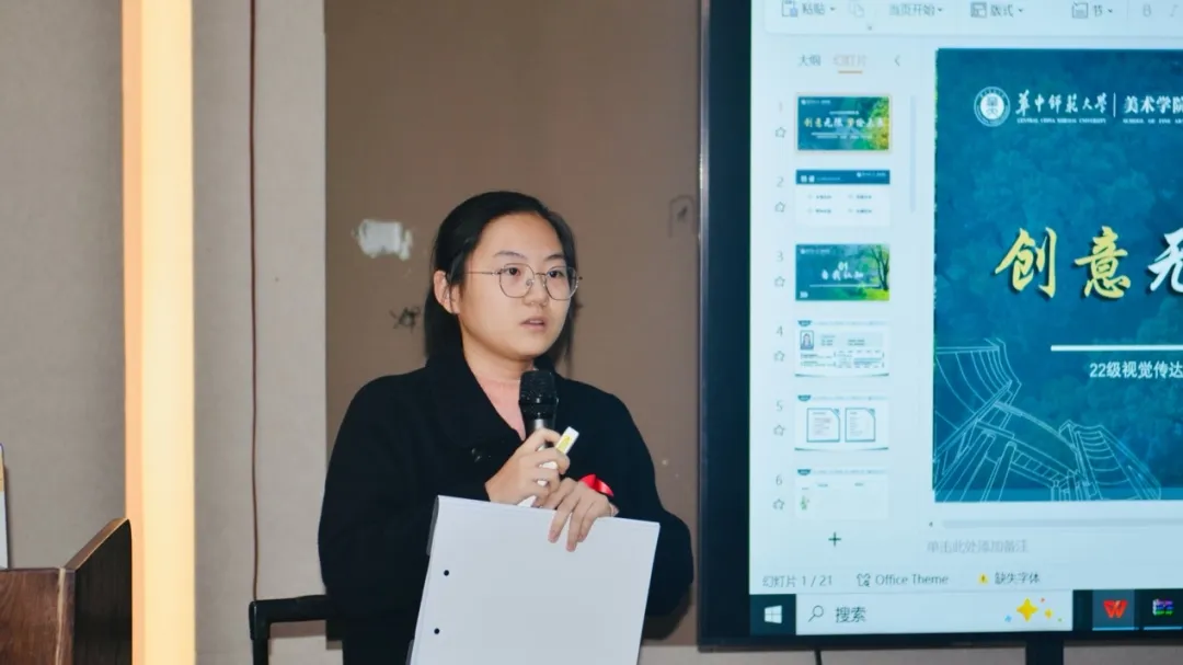赛道中,四位同学陈述思路清晰、逻辑严谨,充分展现出了美院学子扎根专业、勇闯未来的精神风貌。其中,二号选手黄贻铃瞄准高中美术教师这一职业定位,进行了深刻的人职匹配和职业规划分析;三号选手叶佳瑶以其坚定的理想信念和对美育事业的热爱,规划了一条清晰的职业发展道路,明确了自己适合中小学美术老师的职业定位。在评委提问环节,选手们灵活应变,展现了深厚的职业认知。余为恒老师对选手们的表现给予了高度评价,并鼓励大家持续关注行业发展动态,了解岗位需求,提升自身能力。