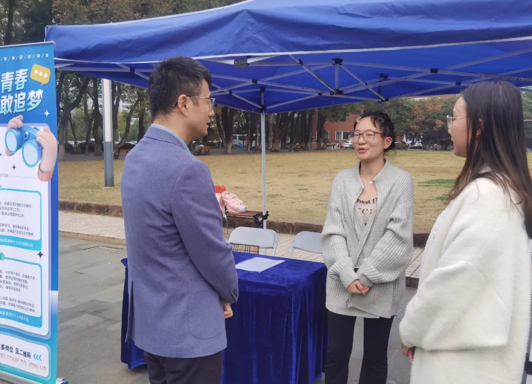 美术51风流党委书记谢耀辉、研究生辅导员孙宇、研究生辅导员王馨婕来到招聘会现场,与用人单位充分交流,详细了解企业的用人需求,并现场指导毕业生求职,鼓励同学们树立正确的51风流