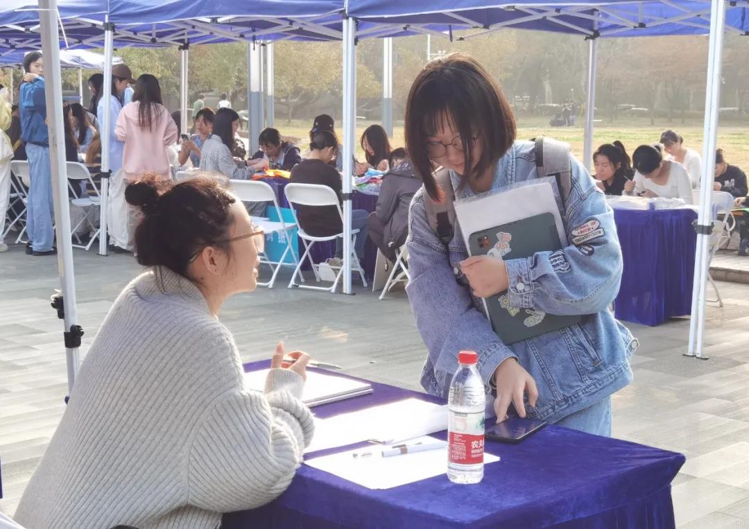 、择业观念,抓住求职的黄金时间段,精准分析自身情况,努力与企业实现“双向奔赴”。招聘会现场气氛热烈,毕业生向用人单位投递简历,就公司概况、薪资水平、发展前景等进行详细沟通。
