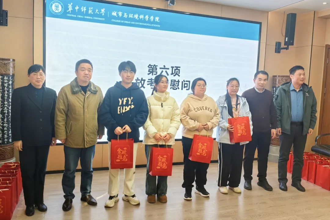 会议最后,参会领导和班主任向毕业生代表发放考研慰问品。
