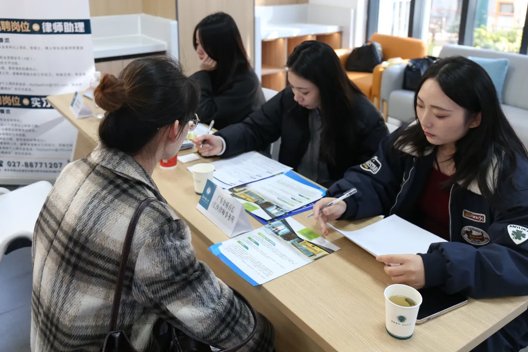 情况。此次招聘会吸引了北京德和衡(武汉)律师事务所、北京大成(武汉)律师事务所、湖北省武汉市尚信公证处等14家优质用人单位参会。