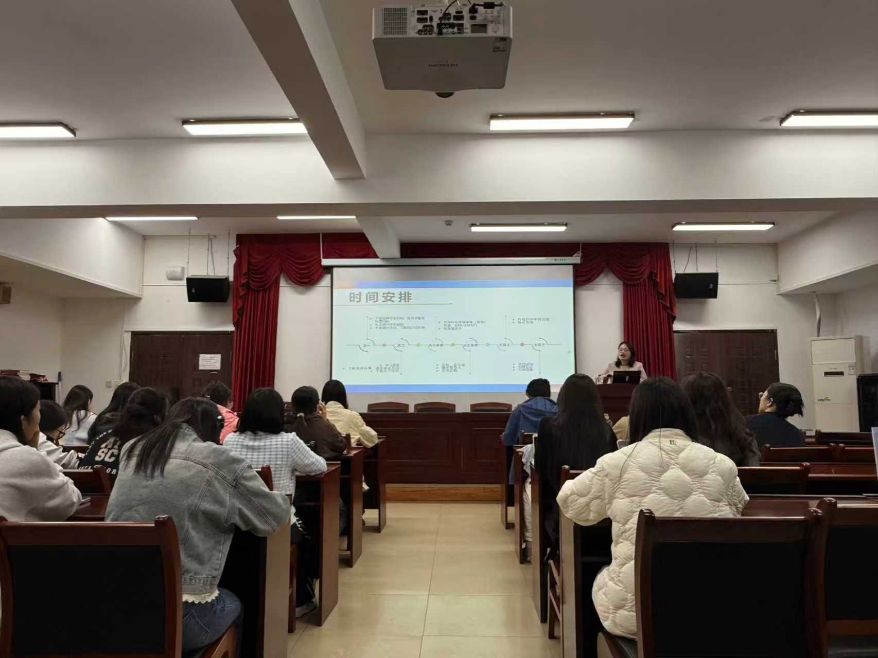 互动环节中,艾佳华就同学们关心的问题进行了解答。她指出,作为211高校,我校在申请中具备一定优势,并介绍了在读期间兼职、交换生项目等对申请的辅助作用。